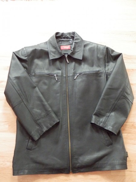 veľmi málo nosená koženná bunda pre pánov, čierna farba, veľkosť písaná M, ale skôr L, na bokoch sa dá prispôsobiť postave - stiahnuť/roztiahnuť, rozmery: obvod hrudníka 2x56cm, celková dĺžka 71cm, plecia 17cm, dĺžka rukáva: 65cm