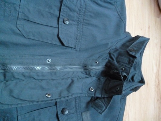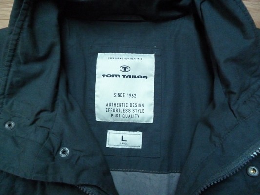 nenosená, nesadla veľkosť, prechodná, oteplená, značka Tom Tailor, veľkosť L, farba tmavo-modrá, zapínanie na zips, golier okolo krku, rozmery: obvod hrudníka: 2x60cm, celková dĺžka: 75cm, dĺžka rukáva: 68cm, ramená: 48cm, plecia 14cm