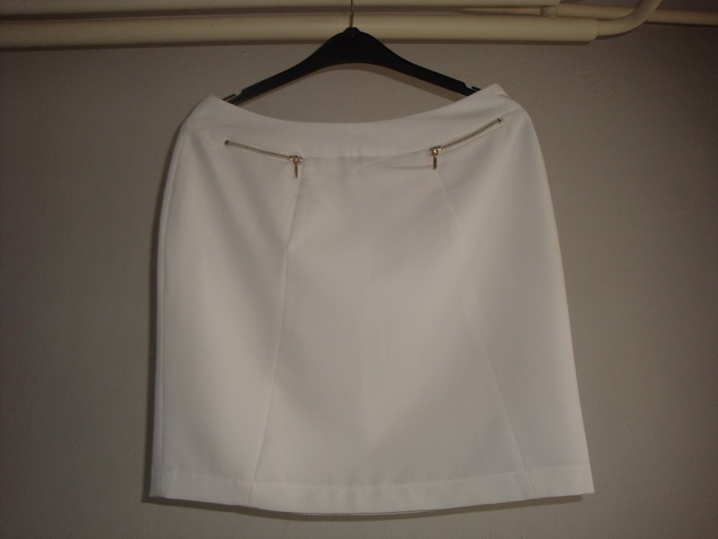 Predám úplne novú bielu sukňu - veľkosť 40. Sukňa je podšitá, vpredu má 2 ozdobné zipsy. Zapínanie vzadu na zips. Rozmery: dĺžka 48 cm a pás má 80 cm. Materiál: 75 % polyester, 20 % viskóza a 5 % elastan. Pranie na 30 stupňov C. Na dobierku neposielam a na SMS nereagujem. Len pre vážnych záujemcov. E-mail: lubica75@yahoo.com