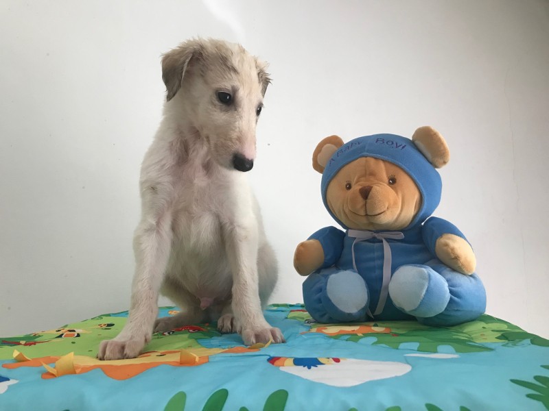 Nádherné biele šteniatka ruského chrta Barzoja po rodičoch s PP hľadajú milujúce rodinky. Máme 3 psíkov a 2 sučky. Je o ne s láskou postarané aj keď neboli plánované. Samozrejme sú pravidelne odčervované, v čase odberu budú zaočkované a začipované. Rodičia sú dovevzení z PL. Mamka je ešte mladá a nestihli sme ju uchovniť, preto sú šteniatka bez PP. Chováme býkov a tak sú šteniatka odchované na kvalitnom mäsku z domácej produkcie, pijú kozie mliečko a 24 h majú k dispozícii granule svetovej značky. Každé šteniatko si odnesie do nového domova aj svoju obľúbenú hračku a krmivo na prvé dní.