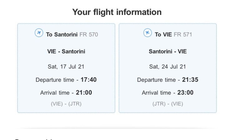 Mám na predaj 2 spiatočné letenky, batožina 2x20kg do Grécka (Santorini)