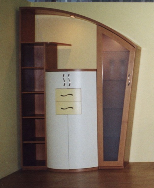 Predám atypický kus nábytku Sírius. Je vyrobený z ohýbaných prvkov, morenej prírodnej dyhy a masívu. Vhodný je do kancelárie, pracovne, obývačky, vstupnej haly, salónu...