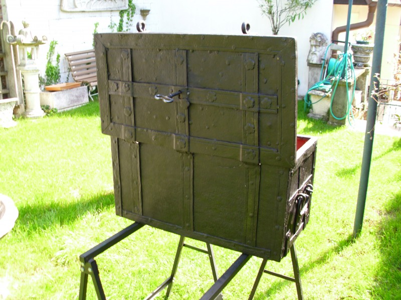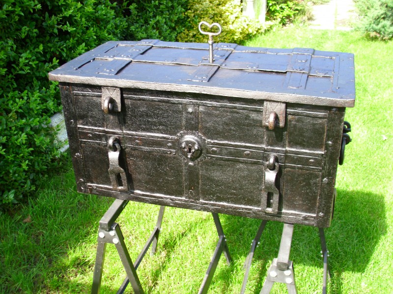 Predám renesančnú kovanú truhlicu z obdobia okolo roku 1700.Rozmery: dĺžka 73 cm,výška 35 cm, šírka 42 cm.Je zreštaurovaná, má funkčný zámok s 5-imi západmi.Ide o mimoriadny, cenný kus.