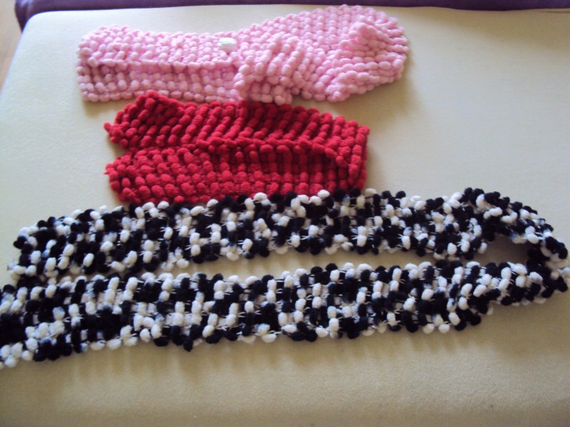 Červený-pre 2-3ročné dievčatko-2€/,bielo-čierny-veľké bambuľky a ružový cena-5€.
