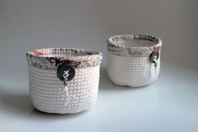 Háčkovaný košíček, ktorý je vhodný na uskladnenie rôznych drobností.