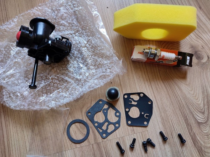 Predám karburátor +sada tesnení na kosačky s motorom Briggs & Stratton 795477 498811 795469 794147 699660,je tam všetko na foto karburátor+vzduchový filter+tesnenia+zapaľovacia sviečka+primer na palivo