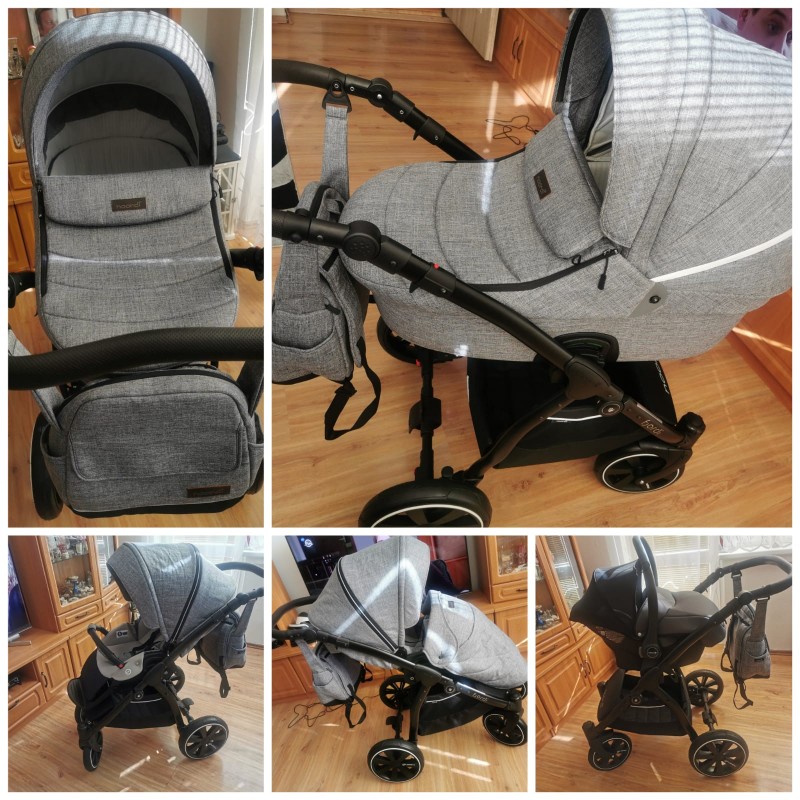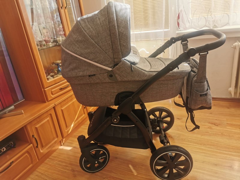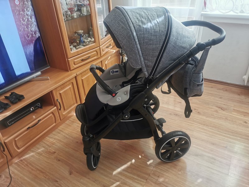 Sedaciu cast je taktiež možné upevniť v a proti smere jazdy, nastaviteľná opierka chrbta a nôh, 5 bodový bezpečnostný pás, maxi strieška s možnosťou vetrania. Podvozok je hliníkový s ľahkým systémom skladania, kvalitné odpružené predné i zadné nafukovacie kolesá. Autosedačka so strieškou a zatepleným nanoznikom s adaptérom na upevnenie na podvozok. Príslušenstvo:prebalovacia taška, pláštenka, sieťka proti hmyzu, slnečník, držiak na fľašku.