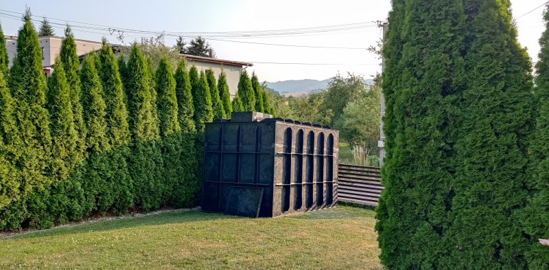 Plastová nádrž-žumpa: je navrhnutá ako samonosná konštrukcia. Vďaka tejto konštrukcií a technológií vystuženia rebrami a stropnými stojkami vo vnútri nádrže nie je potrebné nádrž obetónovať. Nádrže sú navrhnuté a staticky spočítané pre maximálnu nosnosť a pevnosť. Na nádrž je možné namontovať rôzne prechody pre potrubia či hadice. Pre prístup do nádrže slúži revízny vstup o priemere 60cm a výške 25cm, je uzavretý plastovým pochôdznym poklopom.