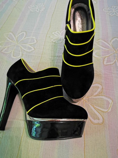 Krásné čierne polotopánky s neon vzorom, nové, nenosené, nepoškodene