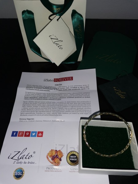 Predám úplne nový zlatý točený oválny obručový náramok na zapínanie , nenosený, v darčekovom balení so záručným listom.