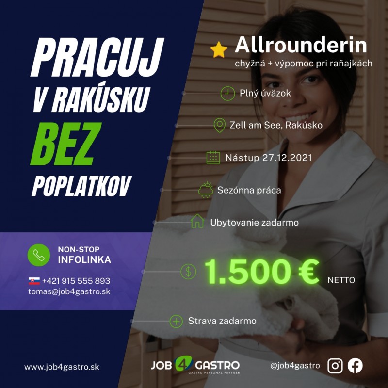 Allrounderin / Chyžná + výpomoc pri raňajkách v jednej osobe (len žena) - zimná sezóna Rakúsko