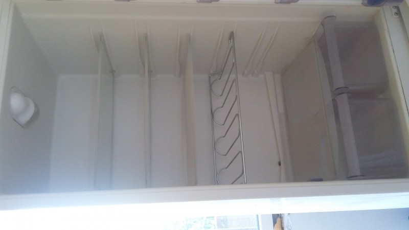 Chladnicka pozostava z polic, suflikov, odkladacieho priestoru na vajicka. Mraznicka ma 3 priestranne sufliky a malu vysuvaciu policku s nadobkami na lad.