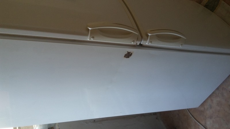 Nedostatkom je iba hrdzavy flak naboku a starsie tesnenie na dvierkach mrazaku-vid foto.