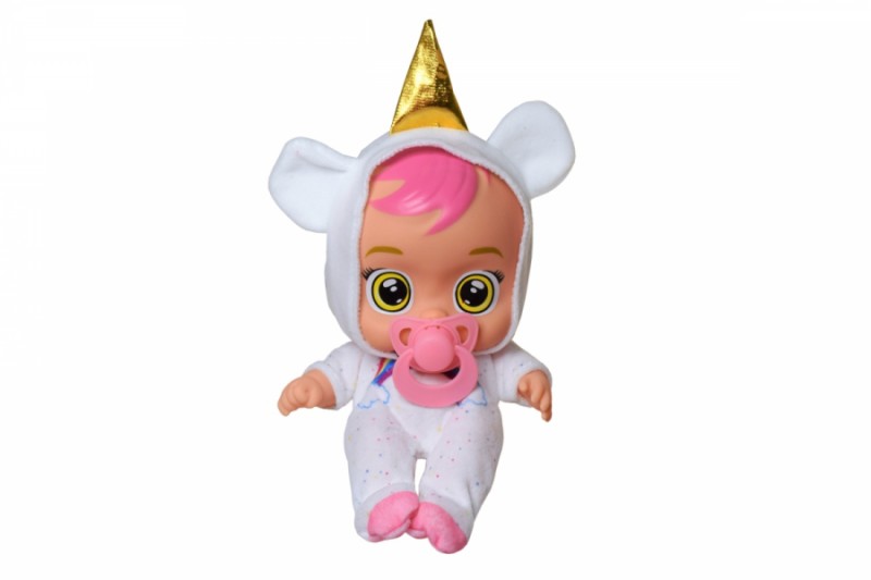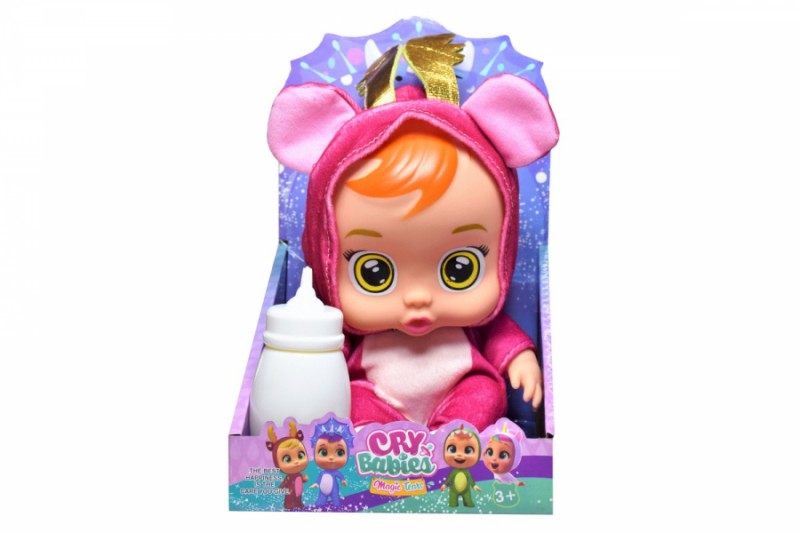 Roztomilá bábika v kostýmiku s fľaštičkou. Vyber z chrbátika strojček a z neho poistku. Stlač stojček a bábika začne bľabotať, plakať a smiať sa. Hračka vyžaduje 3ks gombíkových batérií typu AG13, ktoré sú súčasťou balenia. Možnosť výberu z niekoľkých druhov.