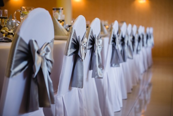 strieborné saténové mašle, tmavší, lesklý, jemný satén, 2,2m dlhé, spolu 7 kusov