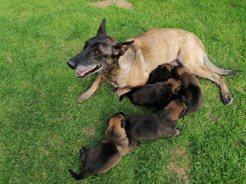 Matka B.O.malinois,otec N.O.Krasna vitálna, zdravá fenka.3.mes.