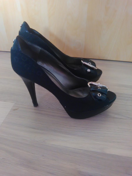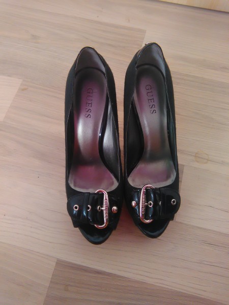 Predávam krásne lodičky s odhalenou špičkou svetoznámej značky GUESS. Kedže majú platformu, veľmi pohodlne sa v nich chodí. Sú nosené minimálne, majú na jednej strane škrabanec, ktorý ale pri nosení vôbec nevidno. Inak nejavia väčšie známky nosenia. Pôvodná cena topánok bola 120€!! Môžete si overiť na internete. Ja predávam za 25€+poštovné a balné.