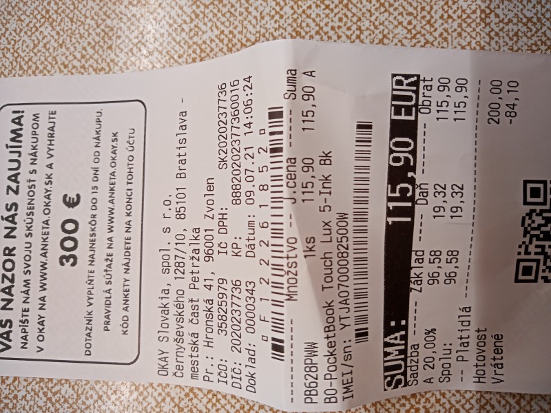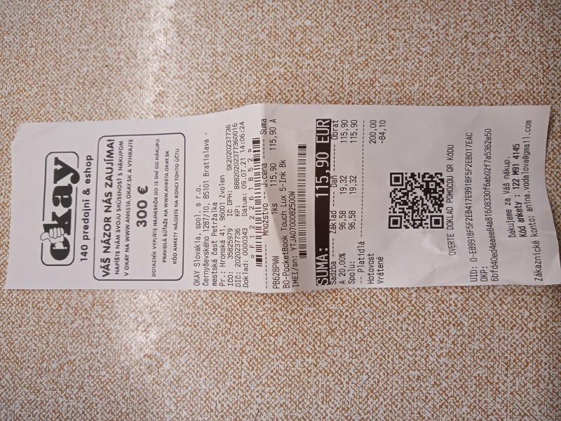 Predam uplne novu citacku Touch Lux 5, PocketBook. Vhodna ako darcek na vianoce. Ja som kupila ako dar v lete ale doticny uz jednu ma. Prikladam doklad aj foto. 0950488785