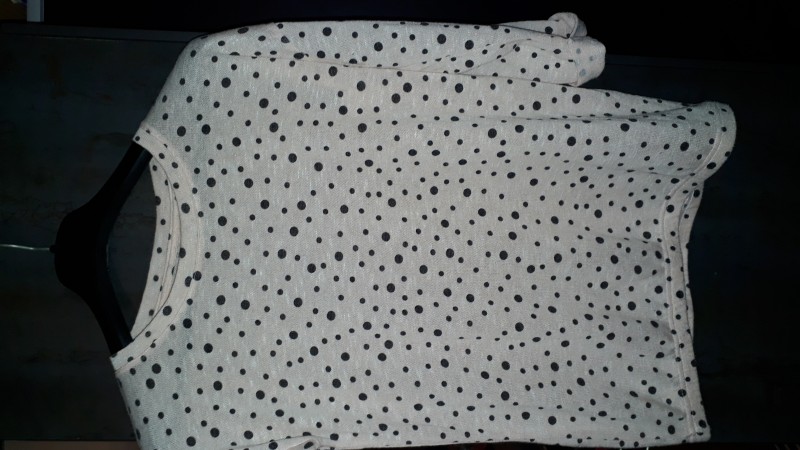 Kremovy,bodkovany svetrik s 3/4 rukavom.