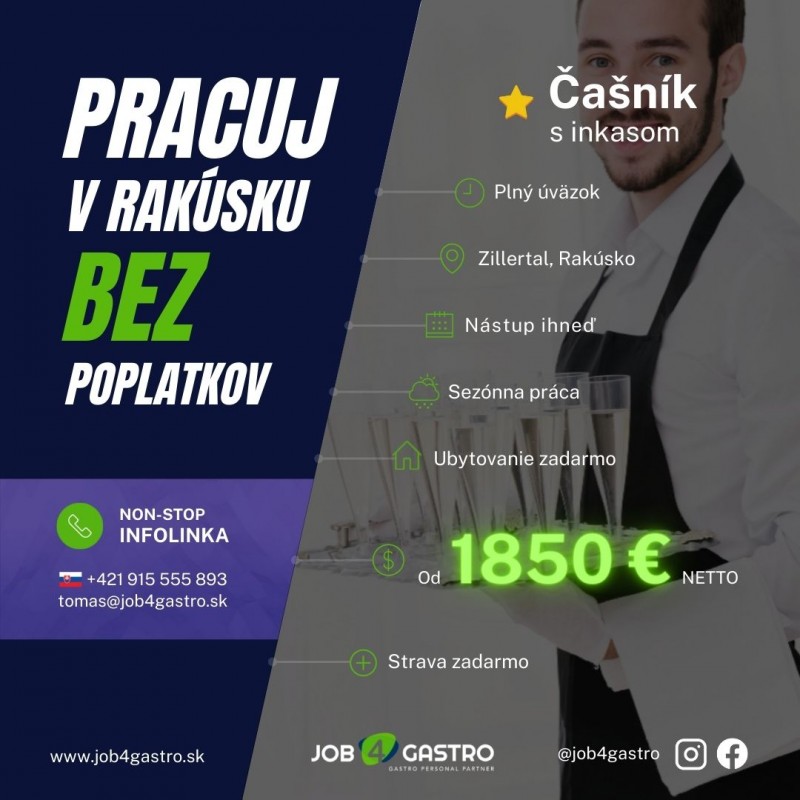 ZIMNÁ SEZÓNA: 3x Čašník s inkasom za bar do Almu