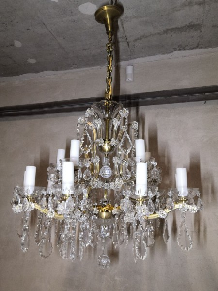 Predám tento veľký poschodový 15sviečkový krištáľový luster.S krištálikmi typu a brusu Swarowski s bohatými farebnými odleskami, mohutného tvaru. Je plne funkčný.