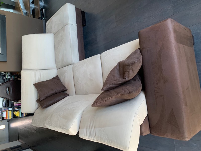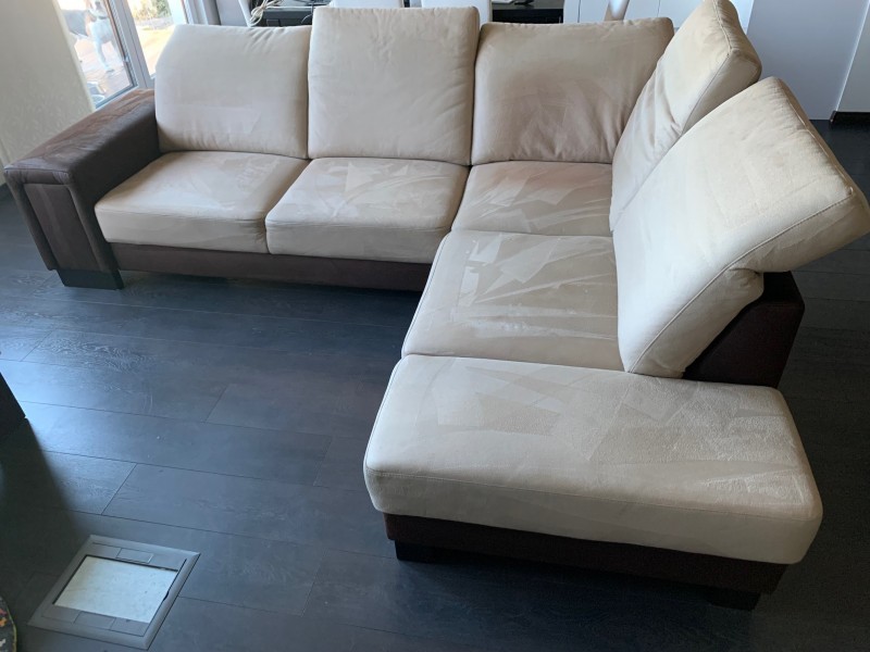 Sedačka má známky používania, celá je čerstvo vytepovaná.