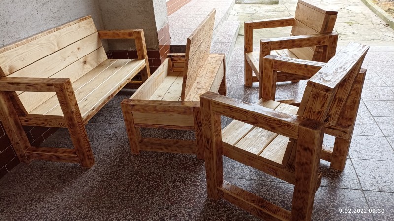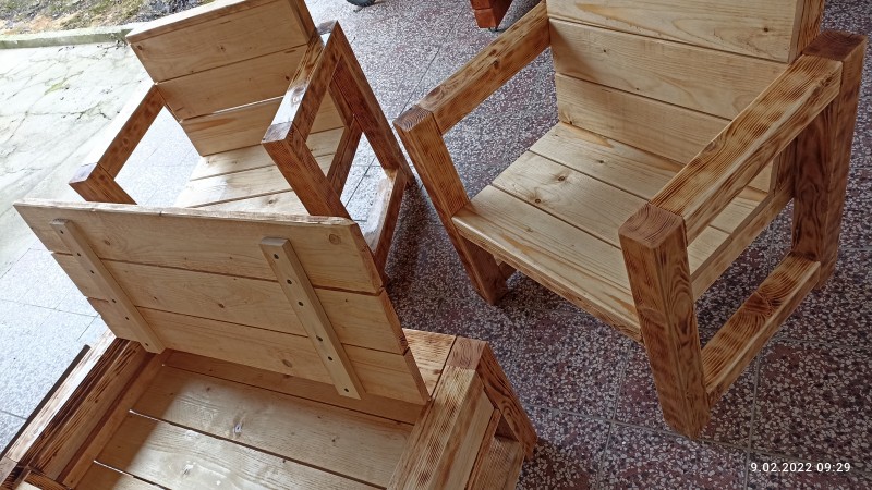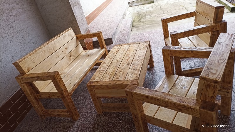 Predám záhradný nábytok z masivu 8cm a 2,5cm pohodlne pre 4/5 osôb.Rozmery stola dl115 x š60 x v45cm(s úložným priestorom). Rozmer lavičky dl140 x š60 x v87cm.Rozmery kresiel dl77 x š60 x v87cm.Lakované lodným lakom.Odber Stará Turá
