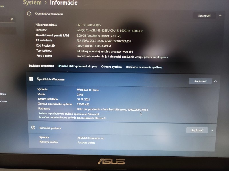 Predám používaný notebook Asus X509FB. Kupovaný v septembri 2019.