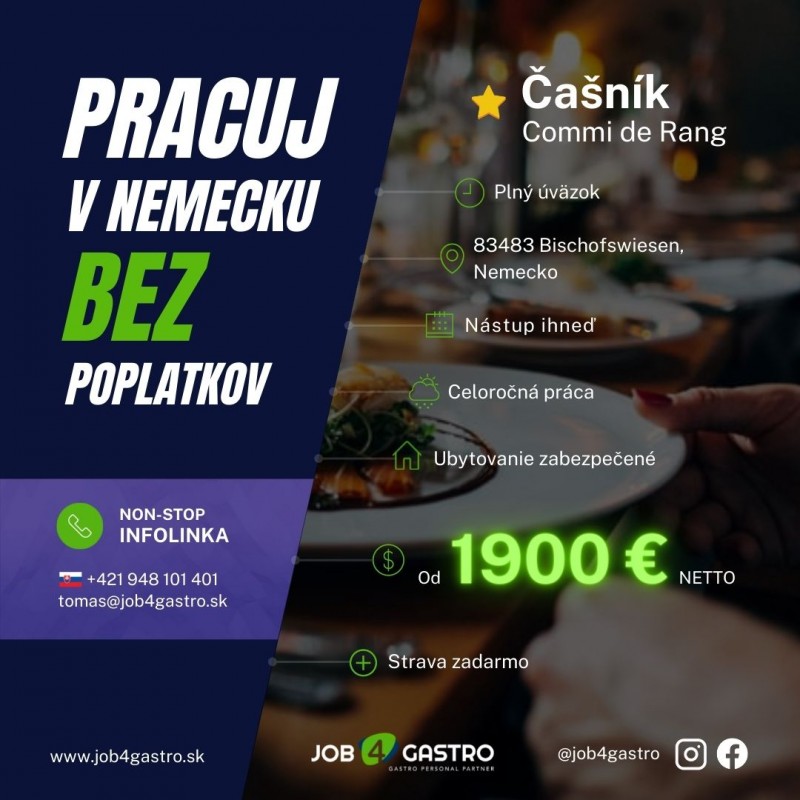 Životopis v nemeckom jazyku prosím posielajte na tomas@job4gastro.sk alebo priamo do messengra