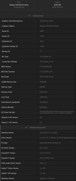 GPU - Radeon RX550/550 Series - Primary/Discrete