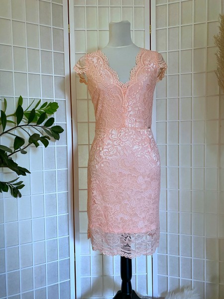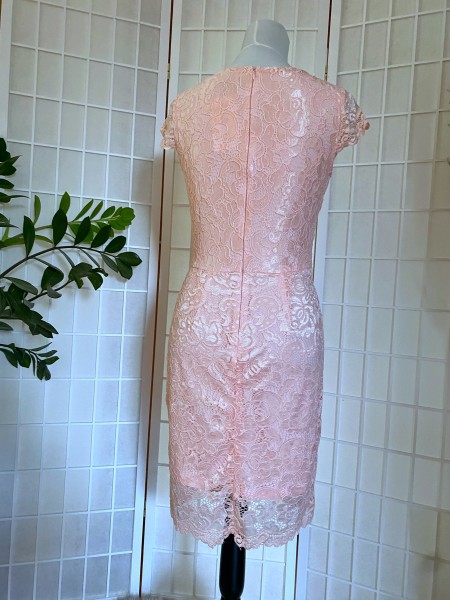 Čipkované šaty z elastického materiálu, zapínanie na zips na chrbáte, s podšívkou. Klasický strih, príjemný materiál, púzdrový obtiahnutý strih.