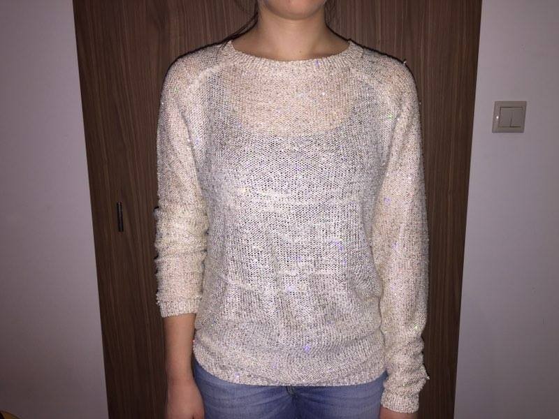 Ponúkam na predaj tento zlatý lesklý sveter zo CHANTAL-u, dvakrát nosený. Hodí aj na tielka alebo bez tielka, na spoločenské udalosti aj na bežné nosenie. Dôvod predaja: píšu veľkosť UNI, ale na moju veľkosť (S) sa mi to zdá trošku veľké. Cena: 6€ plus poštovné