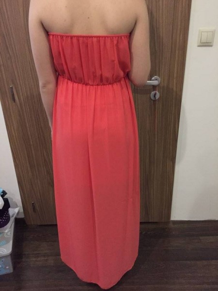 Šaty oblečené len jedenkrát pri príležitosti plesu. Sú to síce plážové šaty (voľné okolo obvodu hrudníka je gumička), ale s vhodným opaskom sa hodia aj na spoločenskú udalosť. Cena 5€ plus postovné