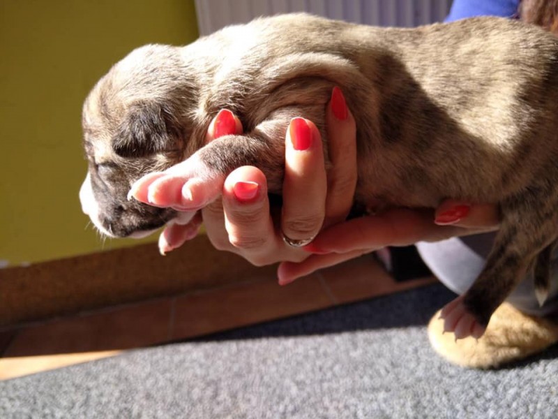 Ponúkam na predaj krásne šteniatka, 2 čierne fenky, 3 psy. Rodičia tvoria pár: (otec)pes-americký amstaff, (mama)fenka- kríženec amerického buldoga. Odber možný od 15.apríla.