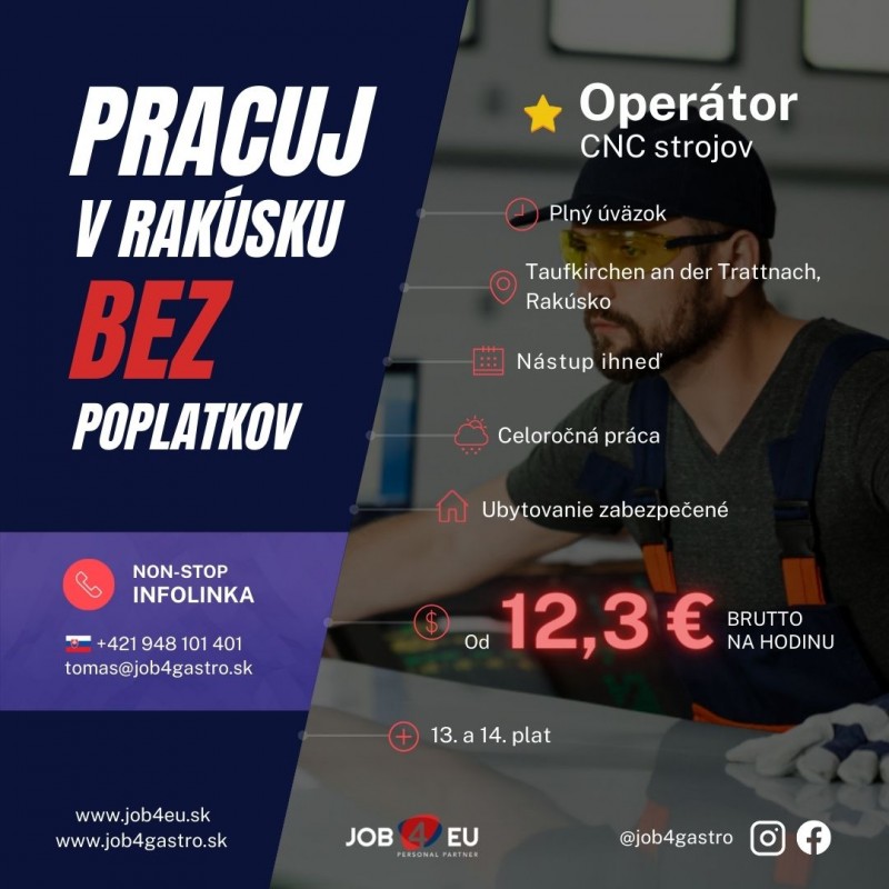 Ak ste vyučený CNC-čkar, tak dostane aj 15€ príspevok na bývanie na odpracovaný deň