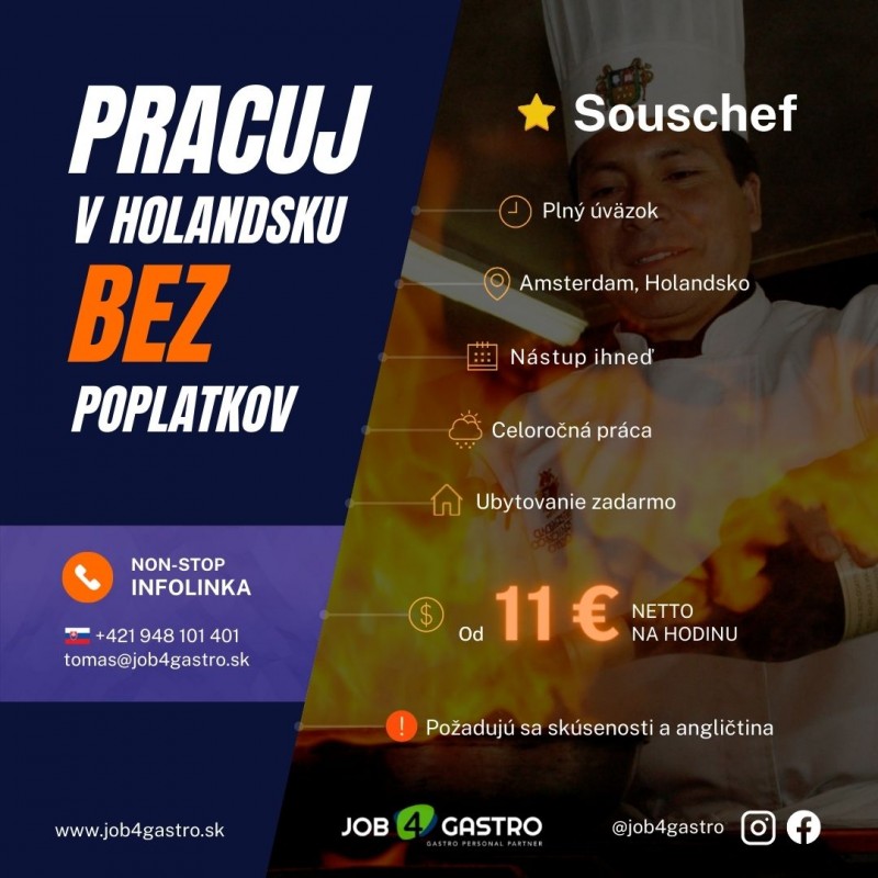 Souschef na luxusný hotel v Amsterdame