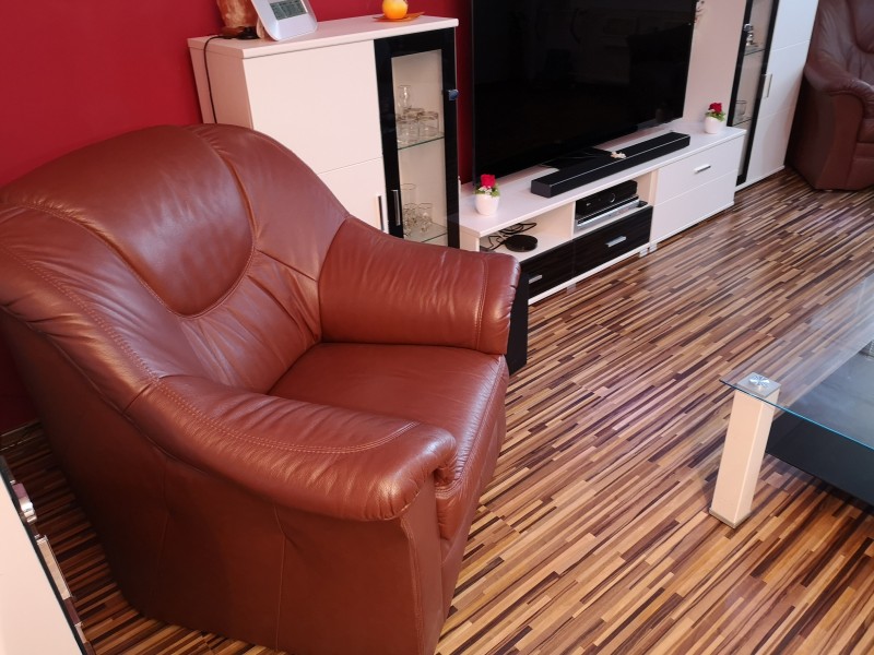 Predám kožennú sedačku, veľmi peknú, nepoškodenú 3-2-1-1. Trojka je rozkladacia. Top stav!