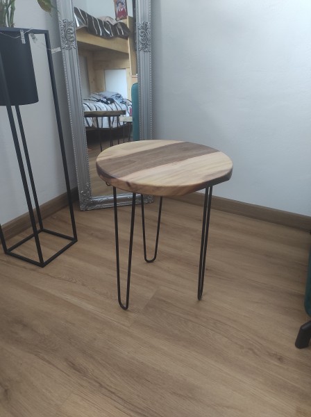 Predám čisto nový odkladací stolík so stolovou doskou z orechového dreva, ošetrenou kvalitným ekologickým olejom ODIES. Podnožie je z ocele, prevedenie čierne matné. Priemer stolíka cca. 380 mm, výška 485 mm.