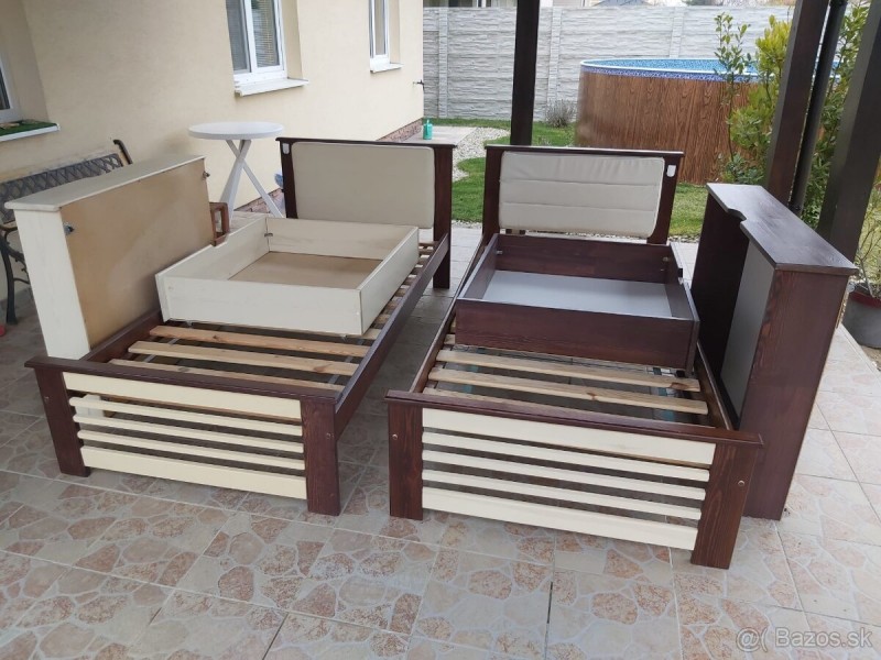 Predám výhodne dve postele aj s matracom. Jednotlivo, alebo spolu. Rozmer 90x200. Cena za obe je 110€. Postele sú v dobrom stave a málo používané. Každá posteľ má dva úložné šuplíky.