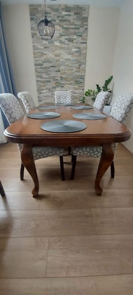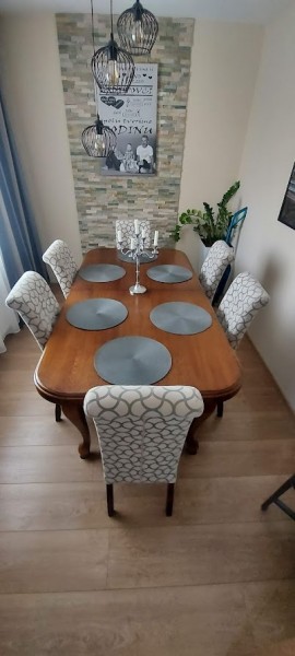 K stolu predávam aj stoličky, plne funkčné, čalúnené, cena 30 EUR/ks v prípade záujmu.