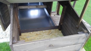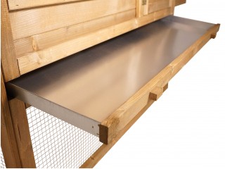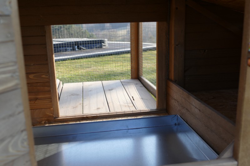 V spodnej časti domčeka je výsuvný rošt v tvare vaničky, pre lepšie čistenie kurína.