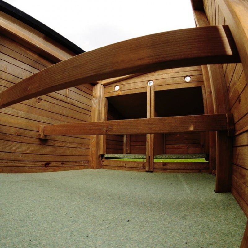 - Na spodnej časti domčeka je OSB doska, ktorá umožňuje jednoduché čistenie.