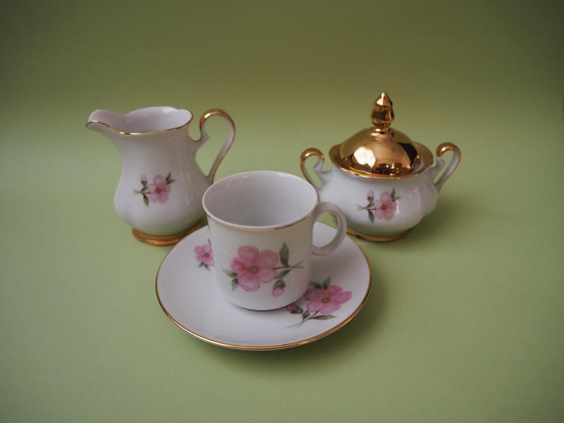 Predám 8-kusovú porcelánovú sadu zdobenú kvetmi, ktorá obsahuje: