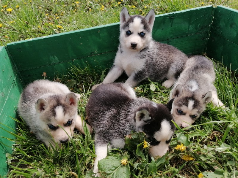 Predam nádherne čistokrvné šteniatka sibírsky husky.2 psiky(2.foto), 4fenky.Všetky šteniatka zaočkované, začipovane a odčervene.V pripade otazok smelo volajte, píšte.