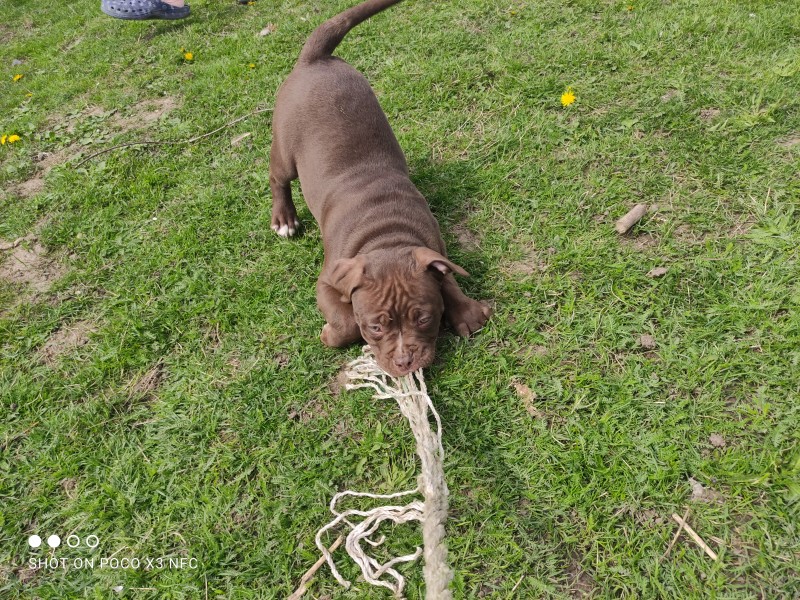 Predávam šteniatka amerického bullyho pocket. Šteniatka sú po kvalitných rodičoch . Majú veľké hlavy a širokú kostru .