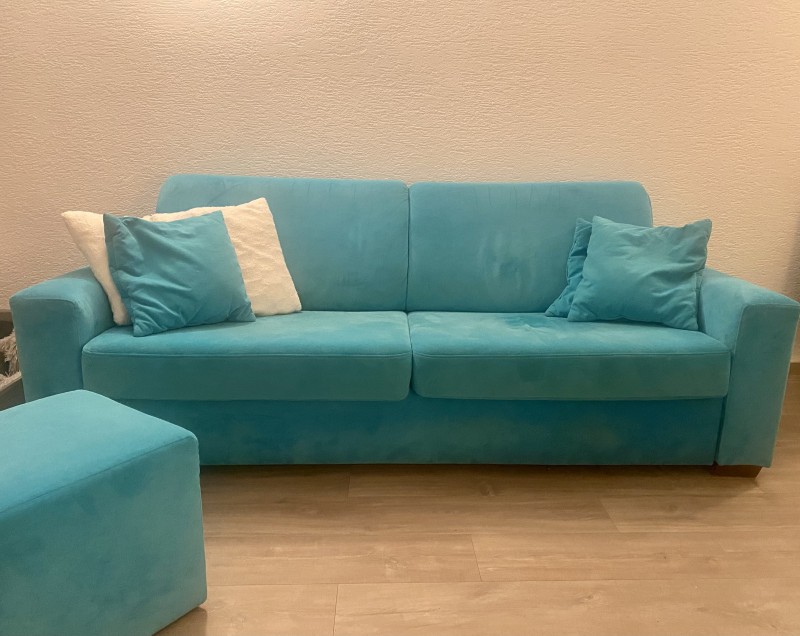 Rozkladacia sedacka s taburetkou.