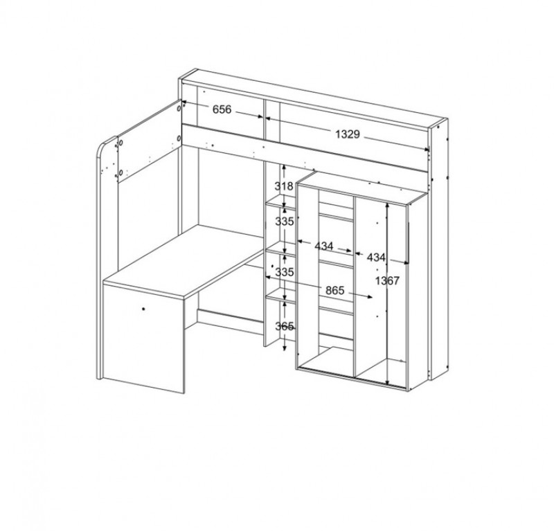 Poschodová posteľ so stolom a skriňou Higher
