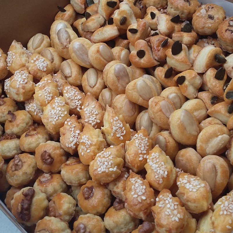 Ponúkam mix drobného slaného pečiva sa skladá z 5 druhov : Korenisté pagáčiky s vlašským orechom, Smotanovo-syrové lístky, Slané slzičky s mandľou, Bryndzové srdiečka s tekvicovým jadierkom, Tvarohové pagáčiky so syrom. V prípade záujmu posielam aj prostredníctvom kuriérskej služby „PACKETA“ - (ZÁSIELKOVŇA) . Drobné slané pečivo - 17€/kg