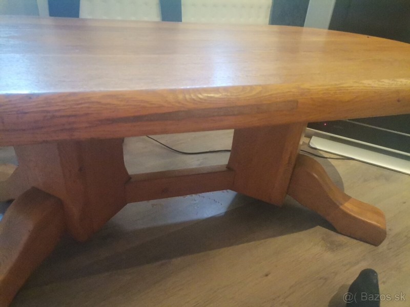Predám konferenčny stolík z masívu DUB,DĹŽKA 130, ŠÍRKA 60, HRÚBKA 6 MENŠIA CHYBIČKA jemné zabrusenie zrejme pri výrobe. Vid foto