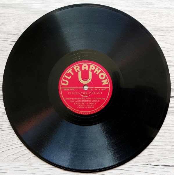 František Krištof Veselý – starožitná gramofonová deska na prvorepublikové značce Ultraphon k přehrávání na starých gramofonech na kliku, rychlost otáček 78 ot./sec. Vynikající slovenský prvorepublikový herec a umělec s dvěma nahrávkami Vieska pod horami a Miluška moja z konce 30. let minulého století. Deska je v excelentní kondici a v originálním papírovém obalu Ultraphon.